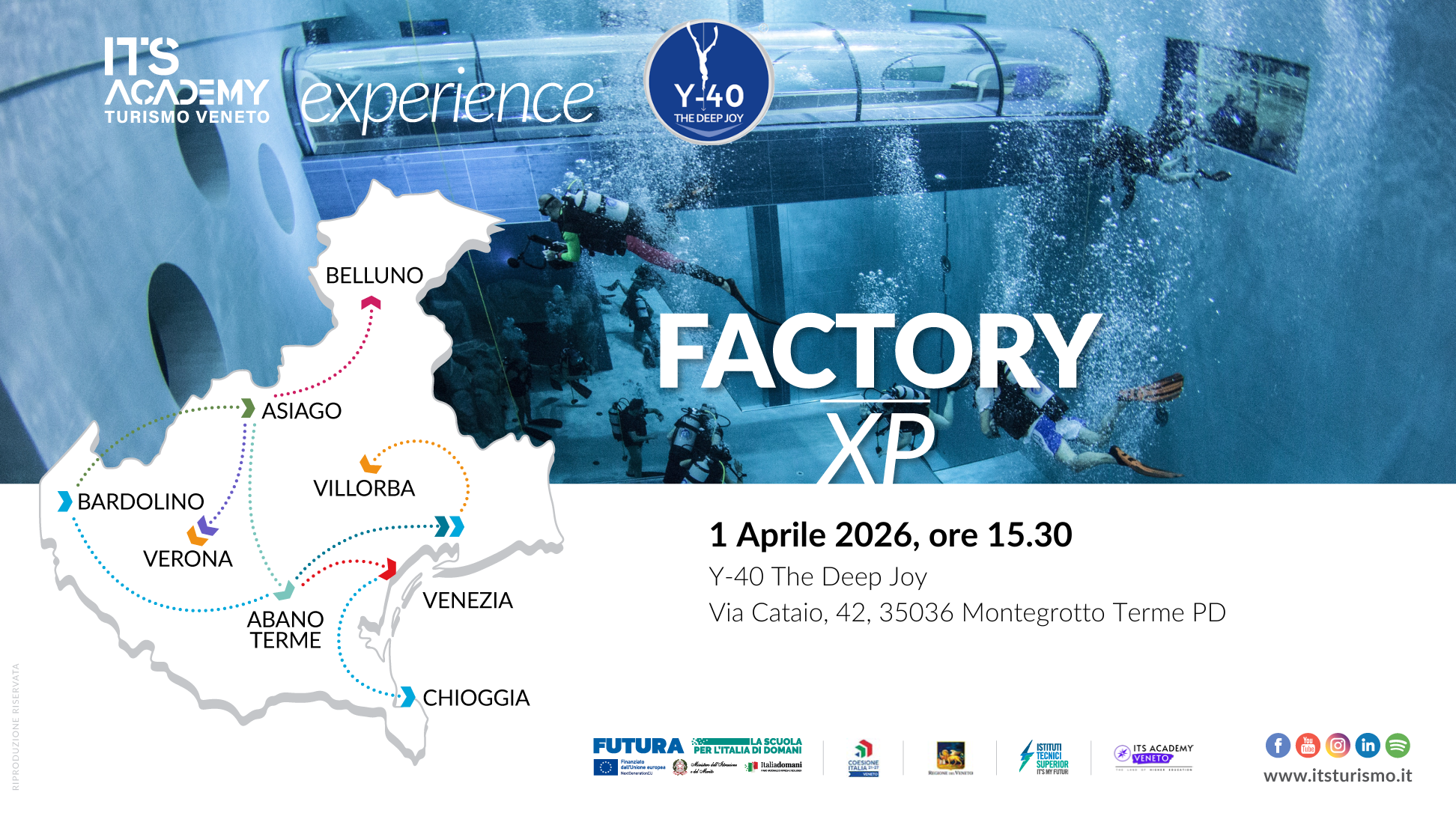 Mercoledì 6 maggio 2026 vi aspettiamo a Chioggia per IT’S FACTORY XP, un’occasione pensata per chi vuole scoprire da vicino il mondo di ITS Academy Turismo Veneto, i suoi percorsi formativi e le opportunità concrete dopo il diploma.